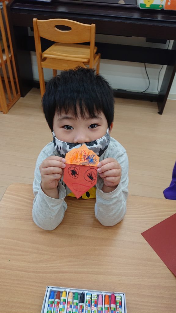 11月19日(木)に製作を行ないました。年長児は自分たちで「どんぐり」を折り、模様やお顔を描きましたよ♡小さいお友だちも上手にお顔が描けました♡週末は、公園でどんぐりや松ぼっくり拾いを楽しんで見てください♡