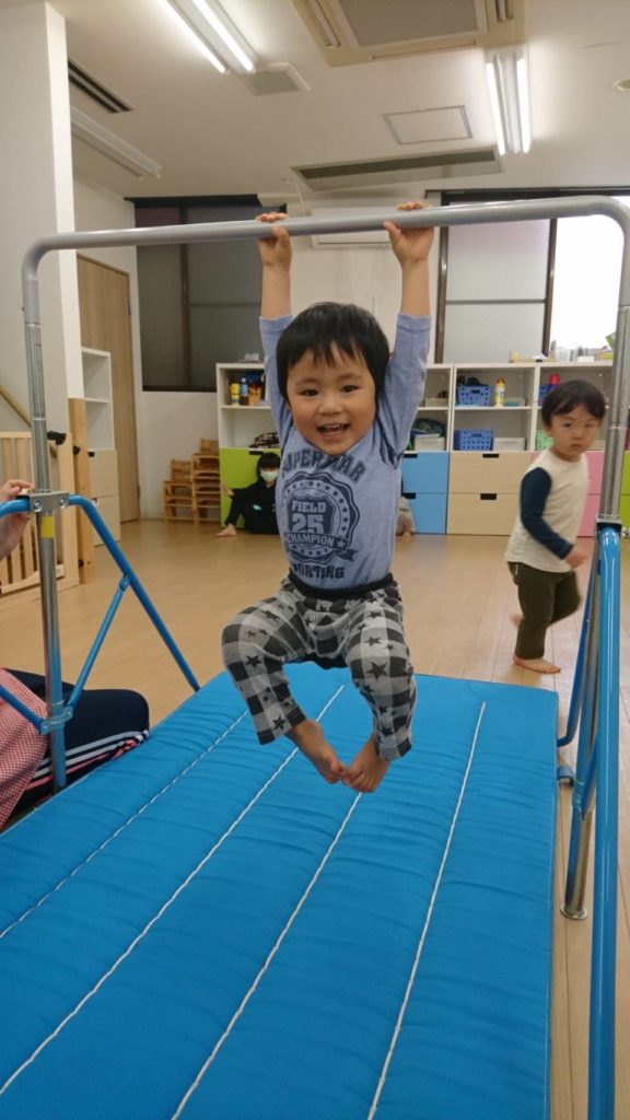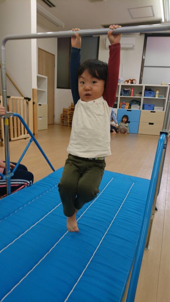 10月22日(木)は、運動遊びをしました。鉄棒に1・2歳児のおともだちも上手にぶら下がることができました♡